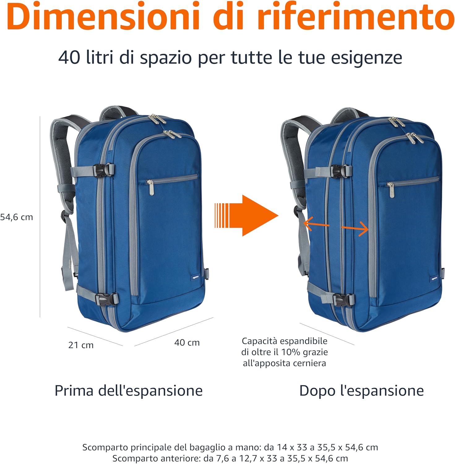 Amazon Basics – Zaino da viaggio/bagaglio a mano
