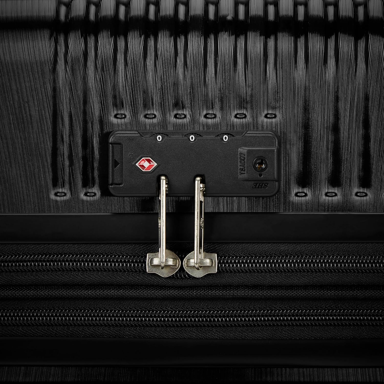 Estetica moderna e lineare in un design complessivamente squadrato per massimizzare ogni centimetro della valigia per una capacità di imballaggio estrema. Tubi metallici industriali con impugnatura ergonomica per una maggiore sicurezza ed esperienza dell’utente. Struttura simile all’alluminio spazzolato con una finitura metallica superiore. Materiale della calotta APCRB™ per la massima robustezza in termini di qualità, peso, prestazioni e resistenza alla fatica