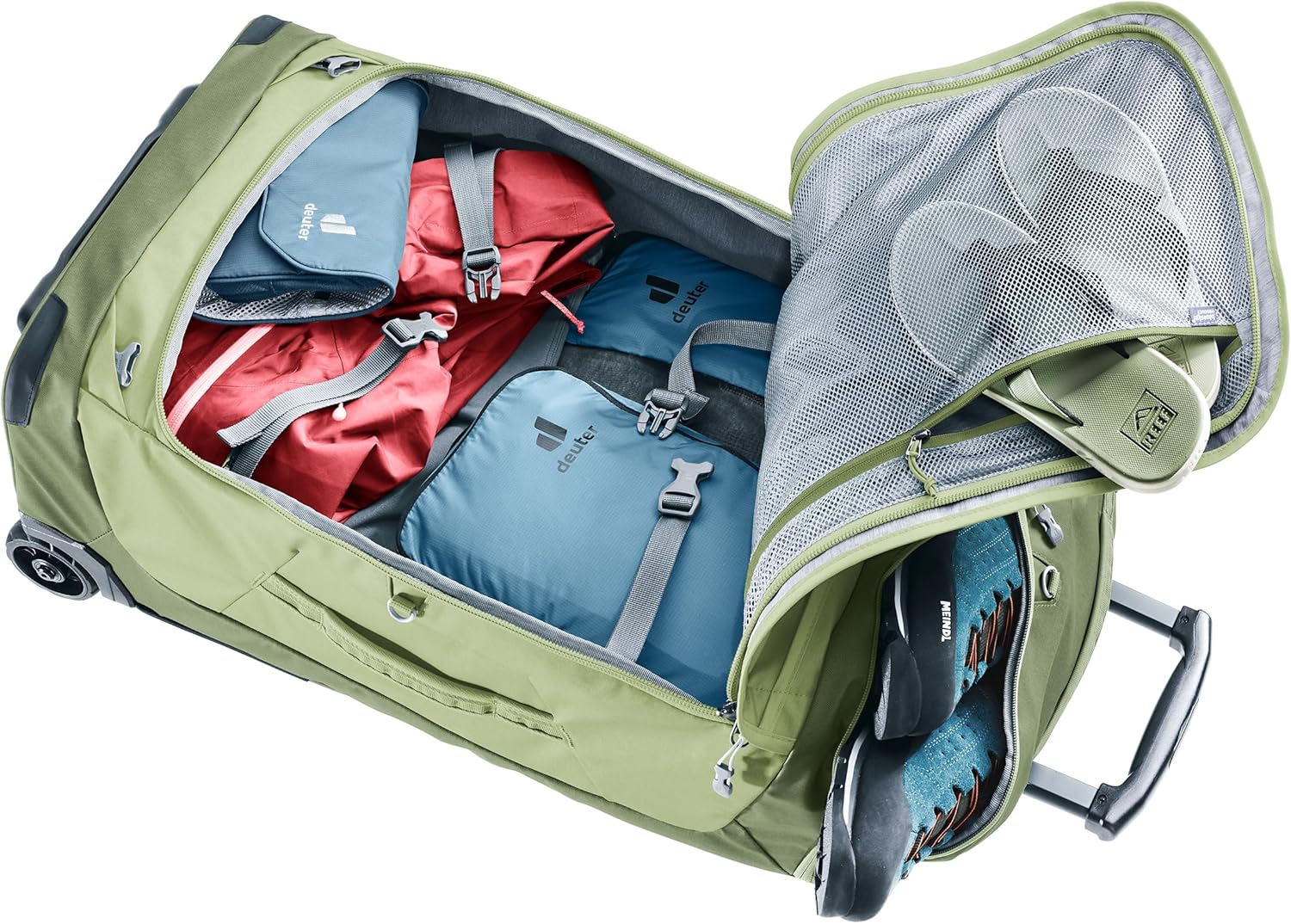 Il trolley, che può essere facilmente trasportato grazie alle cinghie di fissaggio, offre molto spazio per l’attrezzatura. Inoltre, protegge i bagagli da sporco e umidità grazie al materiale robusto e idrorepellente del telone. Grazie alle dimensioni adatte al bagaglio a mano, potrete viaggiare rapidamente anche in aeroporto.