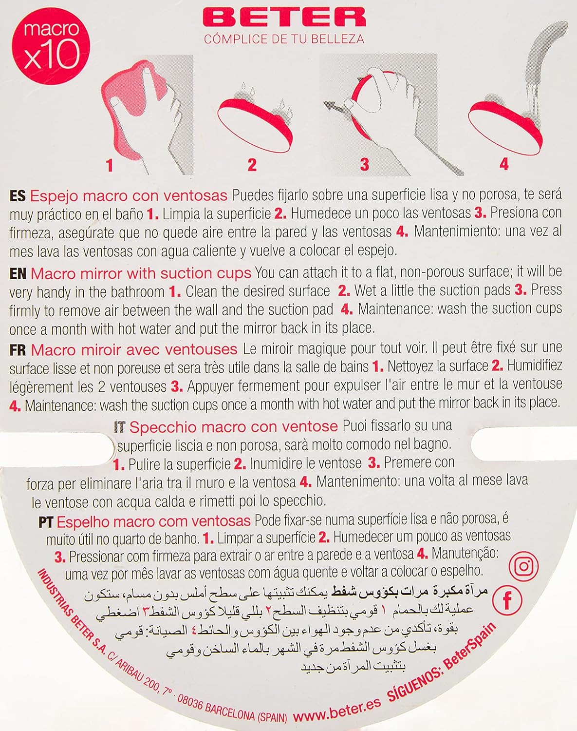 Lo specchio macro x10 che vede tutto. Non ti perdi un solo dettaglio. Con due ventose nella parte posteriore, puoi posizionarlo su qualsiasi superficie liscia. Diametro: 8,5 cm.