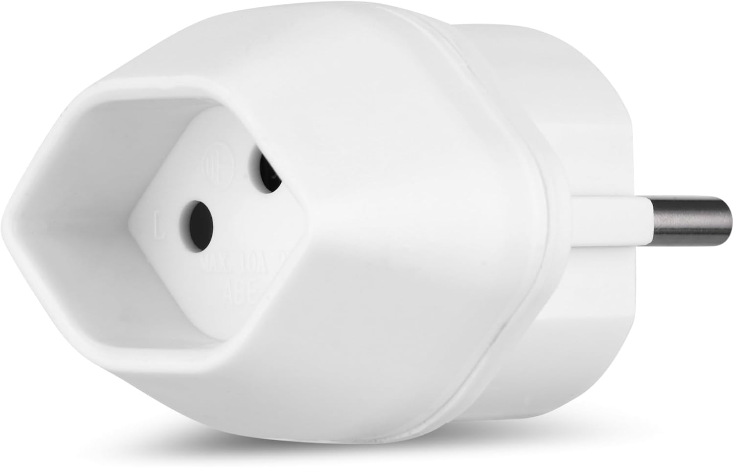 Protezione da contatto. Per un fissaggio sicuro, l’adattatore può essere utilizzato anche per stabilizzare una spina europea piatta di tipo C